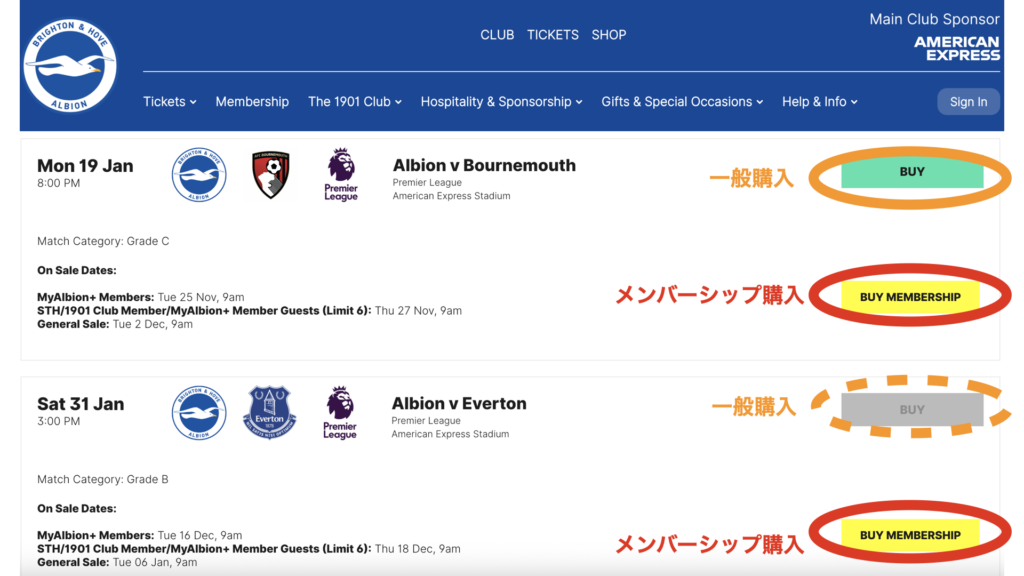 メンバーシップ会員だと試合の1ヶ月〜1.5ヶ月前より購入可能となり、